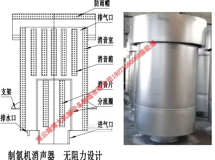 制氮機(jī)消音器具有安裝方便,排汽通暢,不影響制氮機(jī)運(yùn)行,無(wú)需再安裝防雨帽等優(yōu)點(diǎn)。